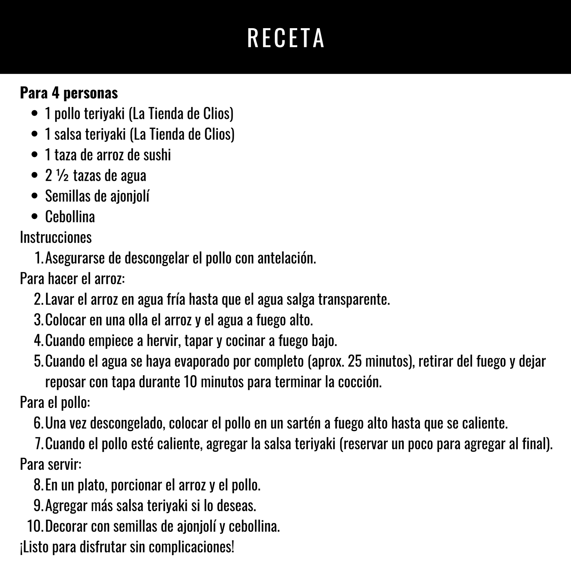 - Pollo Teriyaki